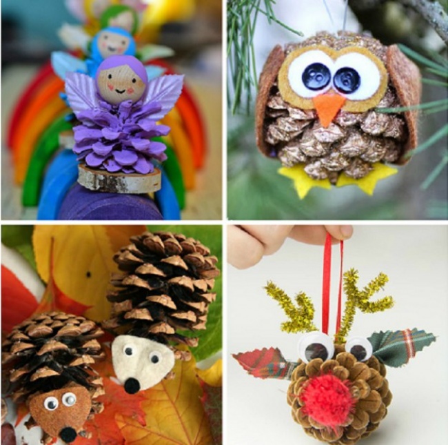 Puteți face diverse animale folosind conurile de brad și/sau pin. Veți avea nevoie de vopsea, bucăți de pânză, nasturi și bineînțeles, de imaginație.