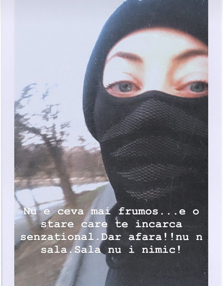Așa că se poate spune că solistă a găsit remediul pentru a ține departe fanii de ea când iese în public sau când merge să facă sport în aer liber. Așa că poartă măști și se camuflaza împotriva fanilor care îi cer câte o poză sau mai nou câte un tik tok. Și zilele trecute când a ieșit la alergare a făcut din nou poză cu masca în lift dar și afară în parc, iar lîngă fotografia respectivă a scris următorul text: