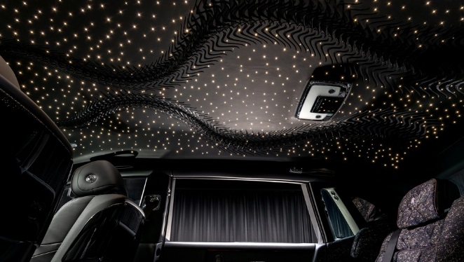 În interiorul cabinei, instalația de deasupra capului este realizată dintr-o bucată de piele despre care se spune că a fost aleasă din peste 1.000 de piei. Dimensiunea este sporită de numeroasele felii atent localizate care dezvăluie țesătura de nailon care este cusată manual în spatele pieii. Plafonul este, de asemenea, accentuat cu 162 de petale de organza din sticlă. Fiecare petală este asociată cu o lumină cu fibră optică din totalul de 995 de corpuri de iluminat care cuprind efectul ceresc. Ornamentarea elaborată a durat aproximativ 300 de ore pentru a fi finalizată manual și a fost realizată de artizanii lui van Herpen, după ce s-au mutat temporar la sediul producătorului auto din Goodwood.