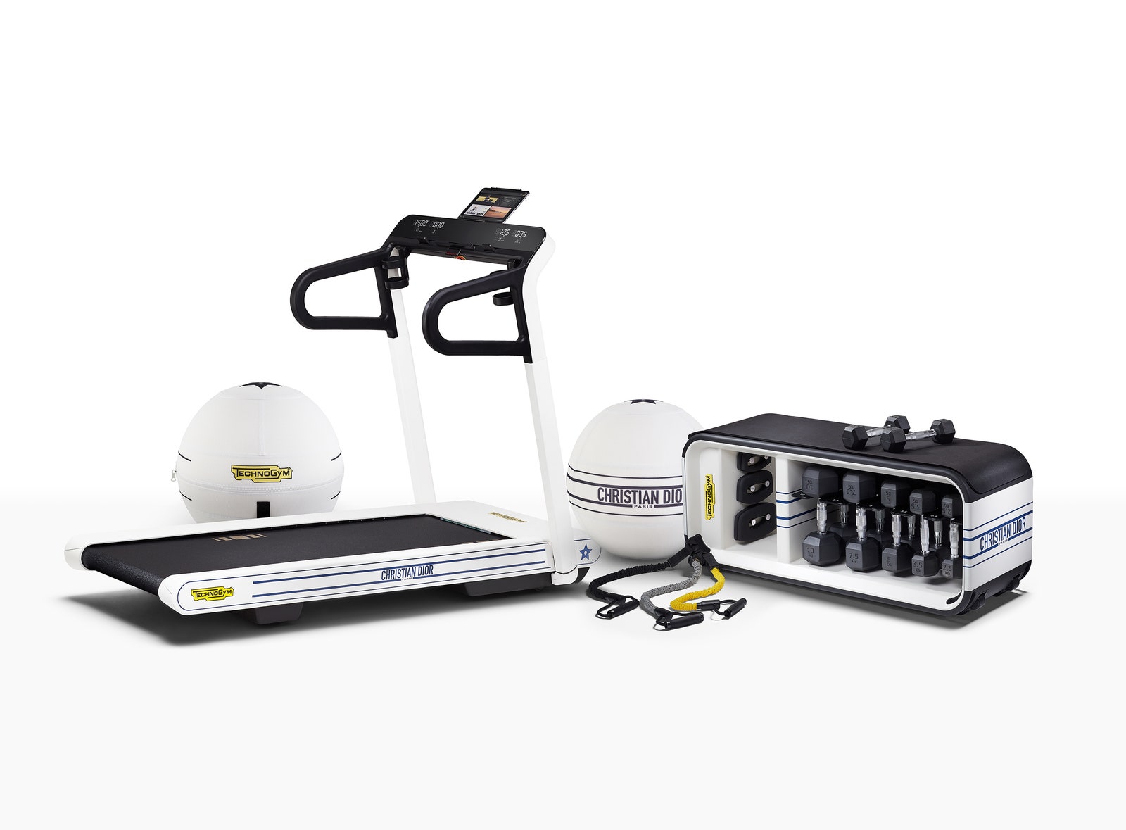 Linia „Dior Vibe” este rezultatul unei colaborări între casa de modă Dior cu Technogym, unul dintre cei mai mari specialiști din lume în echipamente sportive de ultimă generație. Dacă buzunarele vă permit acest lucru, veți găsi o bandă de alergat, o bancă pentru greutăți și o minge de gimnastică împodobită cu sigla Christian Dior.