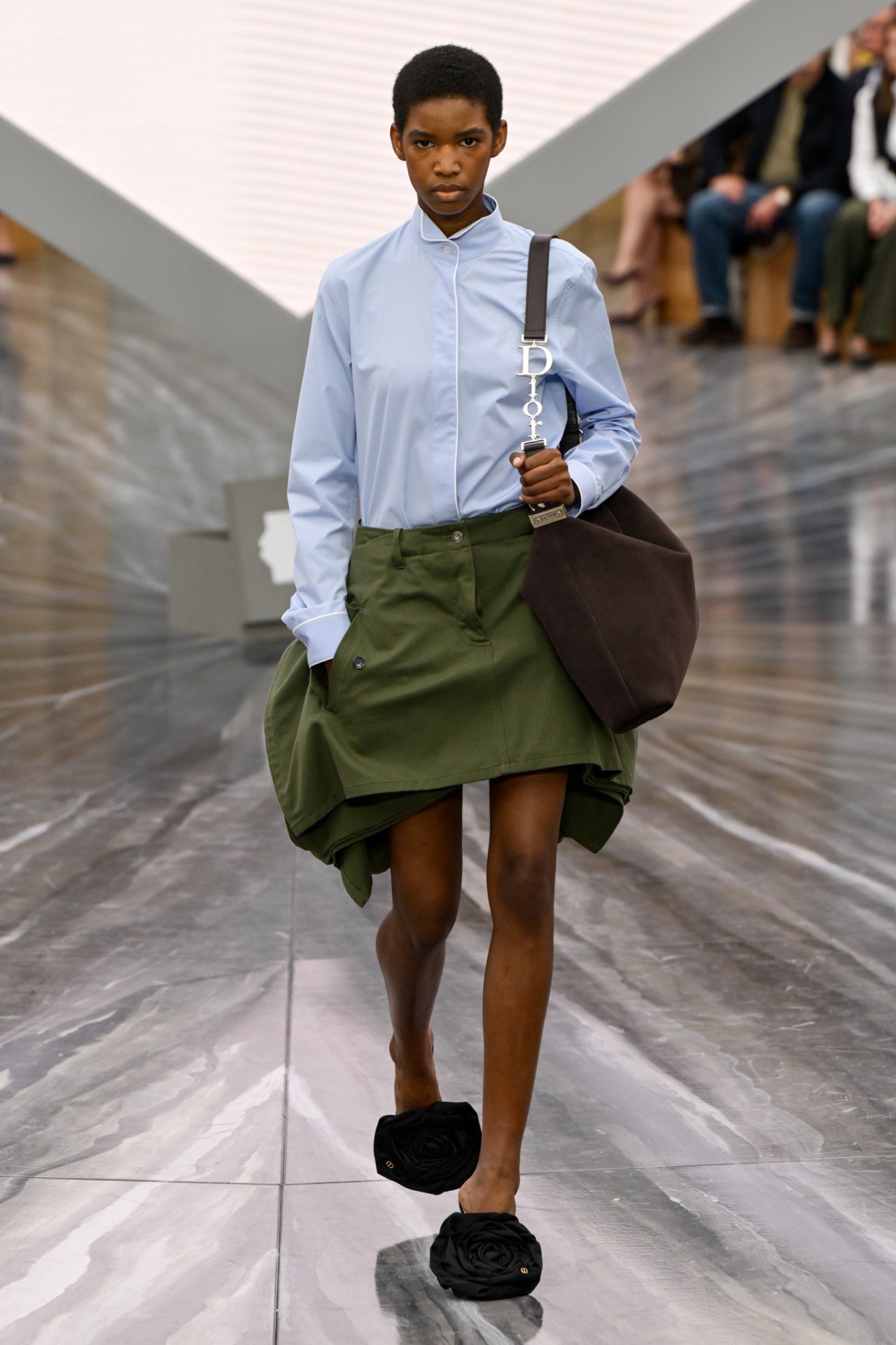 Continuând colecția sa de îmbrăcăminte pentru bărbați din iunie, Jonathan Anderson a reinterpretat clasicele casei de modă, revizitând rochia Delft cu mai multe pliseuri, cu pantaloni scurți și actualizând costumul iconic Bar, cu o jachetă foarte mulată, cu talie și șolduri rotunjite, într-o versiune mult mai scurtă.