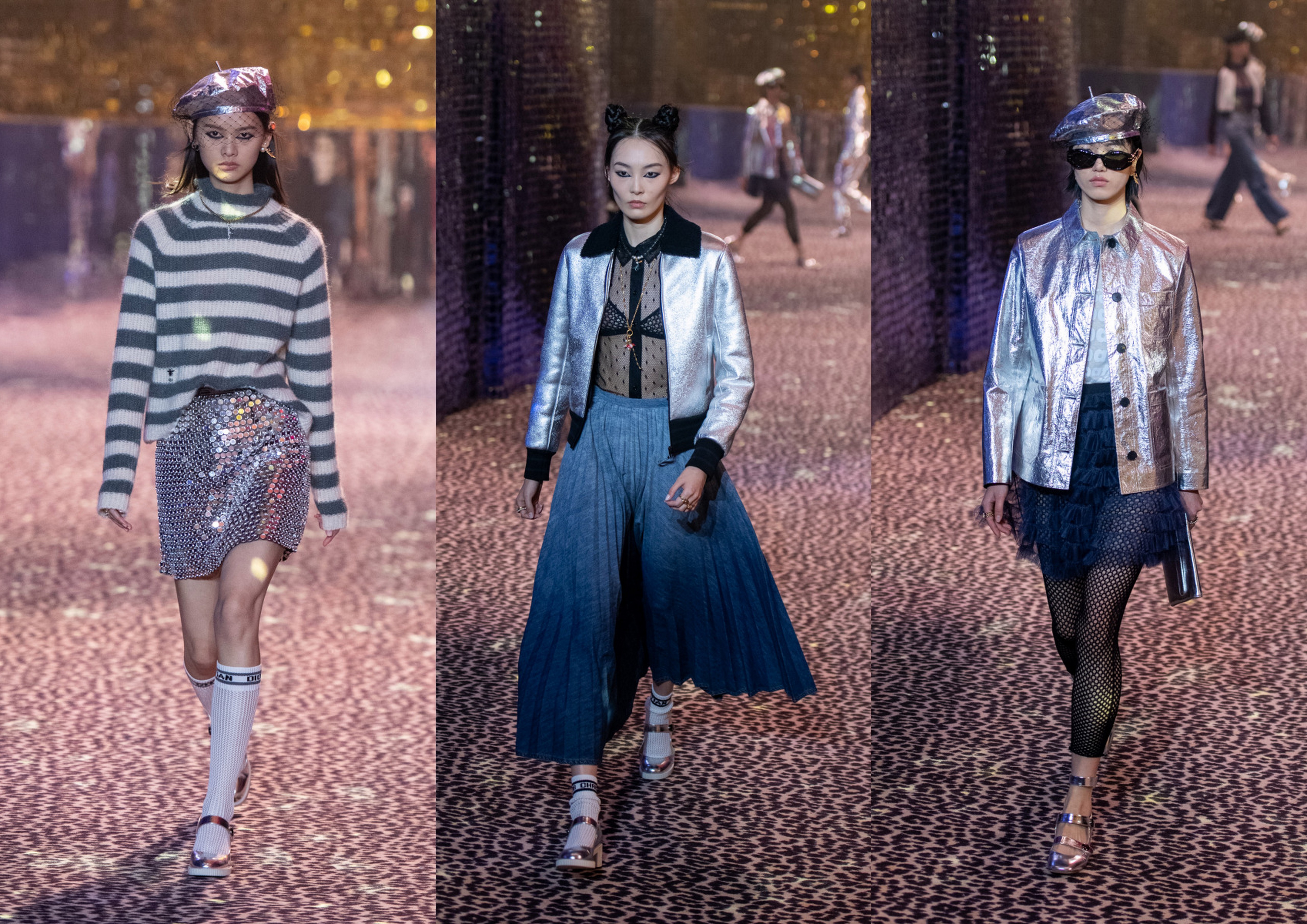 „Este o nouă dimensiune a modei”, a spus Maria Grazia Chiuri, așezată pe o canapea în fața a două ecrane mari cu o legătură audio live către Shanghai. „Este foarte funcțional, sincer, pentru că lucrăm foarte bine. Dar este ciudat pentru mine, deoarece mass-media este diferită. Îți faci treaba, dar trebuie să delegi altor persoane ultimul pas.” Cu mashup-ul său de imprimeu leopard și siluete în stilul anilor '50, inspirate din arhivele Dior și culorile strălucitoare acide extrase din universul Pop Art, colecția a fost concepută pentru a readuce distracția în modă după luni de restricții. Izolarea forțată din ultimul an a făcut-o să fie nostalgică după anii ’70, când avea să viziteze universul de vânzări cu magie al antreprenorului italian Elio Fiorucci din Milano.
