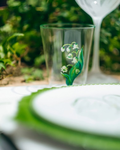 În prezent, directorul artistic al mărcii care se află în izolare în casa ei de țară, la aproximativ 45 de minute de Paris, a revizuit motivul emblematic al casei Dior cu o selecție de farfurii de porțelan, carafe și pahare pictate sau gravate manual și alte vase decorative.