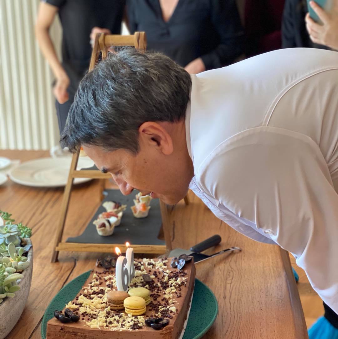"Acum și acum 4 ani! De atunci, suntem fericiți să împărțim ziua lui Constantin de naștere cu momentul cununiei noastre religioase și a nunții. Prilej minunat de a ne bucură de 2 ori. Astăzi, printre consultații, a avut parte de multe surprize. De la familie, prieteni, colaboratori, pacienți. A suflat în lumânări și am ciocnit un pahar cu șampanie.