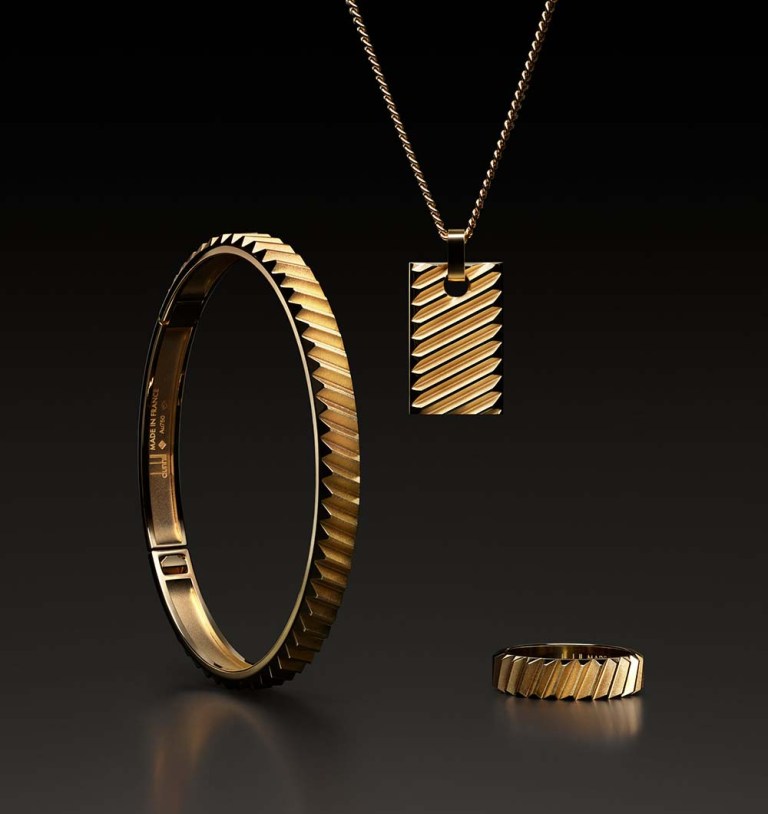 Inspirat de moștenirea sa auto, Dunhill a lansat „Transmission”. Fabricată din aur alb și galben de 18 karate, această capsulă în ediție limitată este finisată manual în Franța și constă din brățări, inele și coliere cu pandantiv.