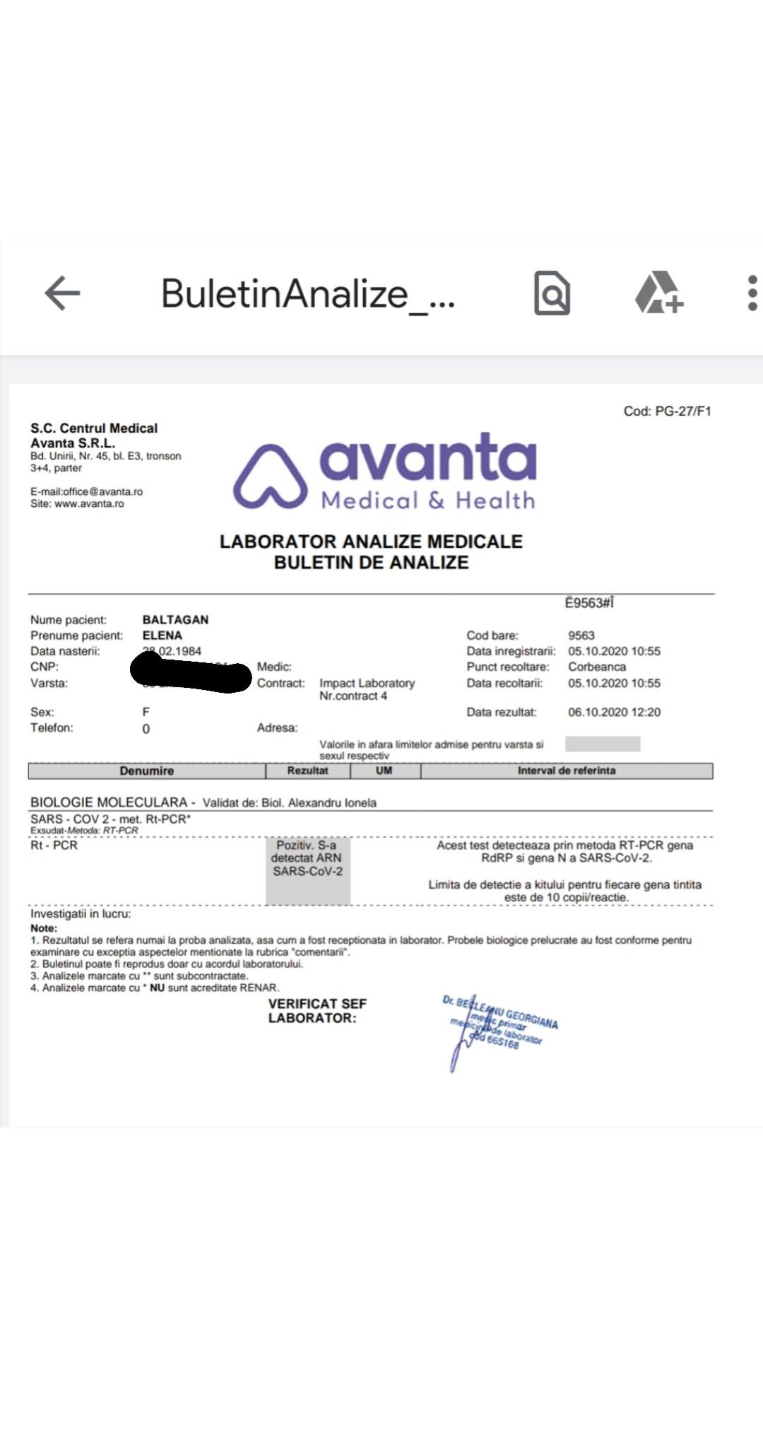 În următoarele săptămâni voi sta carantinată la domiciliu, cu tratamentul aferent. Aveți grijă de voi, protejați-vă și lucrați intens la imunitatea voastră pentru a putea trece mai ușor peste acest virus. Later edit: Atașez rezultatul testului, ca și "PROBA" pentru necredincioși", a scris vedeta pe pagina ei de faceebook. Iar soțul ei, Doru Tincă, care îi este și managaer a venit și el cu noutăți.