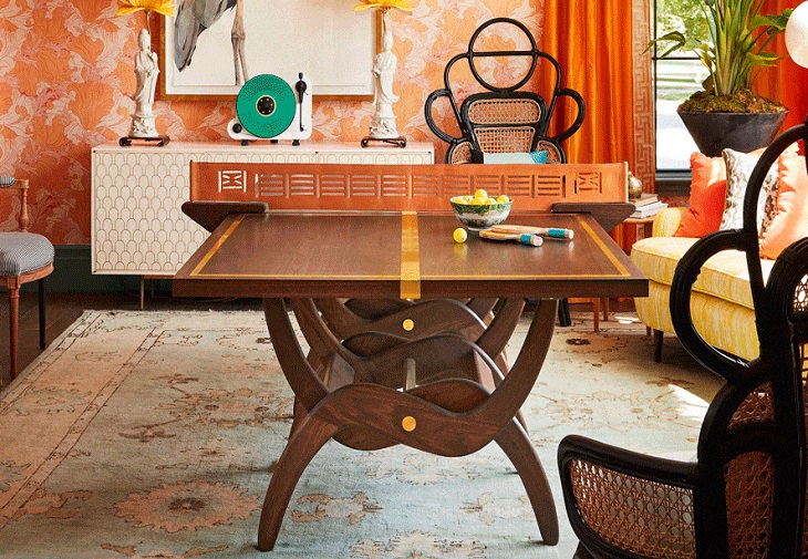 Pentru a obține cu adevărat cât mai mult spațiu în cameră, cel mai bine este să investești în piese multifuncționale care îmbunătățesc versatilitatea spațiului. Așadar, atunci când un designerul de interioare a primit sarcina de a crea o sufragerie potrivită pentru o familie, obiectivul ei principal a fost să se asigure că este folosită și fără să fie nevoie de ocazii speciale sau mese pentru prieteni de sărbători. S-a decis să se gândească la spațiu ca la un loc comun pentru întreaga familie mai mult decât la o sufragerie tradițională și formală. După o mulțime de schițe și idei, a decis să realizeze o masă care poate fi, de asemenea, ajustată la înălțimea mesei de cafea, separată în două mese mai mici pătrate și - nu în ultimul rând, cel mai important - transformată într-o masă de ping-pong. Există o plasă de piele care apare atunci când începe jocul, iar masa se poate împărți în două chiar și pentru jocuri de cărți sau cocktail-uri atunci când nu este folosită pentru mâncare.