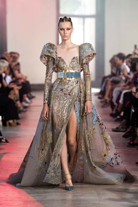 Elie Saab, unul dintre preferaţii vedetelor de la Hollywood, s-a prezentat în faţa publicului cu o colecţie couture strălucitoare, care întoarce orice privire. Creatorul de modă libanez a folosit mult auriu şi a combinat mătăsuri vaporoase cu broderii fine ori satin.