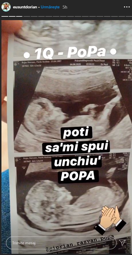 este a iubitei lui. ”1Q-PoPa. Poți să-mi spui unchiu PoPa”, a scris acesta lîngă imaginea cu ecografia postată pe rețelele de socialziare. La un moment dat fratele lui Dorian, Ciprian locuia în Germania, unde s-a instalat și venea foarte rar acasă la ai lui. Se zvonește că Ciprian