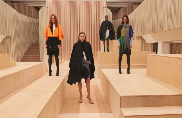 Vorbind despre bej, ceea ce permite fiecărui ansamblu șansa de a străluci este decorul spectacolului, în cadrul magazinului emblematic Regent Street de la Burberry din Londra, înfrumusețat cu platforme asimetrice și drapaje care dezactivează fundalul și permit țesăturilor să apară. Contrastează acea setare blândă cu o coloană sonoră dură și electronică, ai un spectacol Burberry.