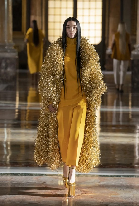 De la cizme aurii strălucitoare până la platforma metalică Mary Janes. Perfecte pentru un ring de dans. Prin această nouă colecție, Pierpaolo Piccioli spune că își dorește să revoluționeze moda Haute Couture. Mai exact, să reseteze și să reprogrameze ceea ce înseamnă couture.