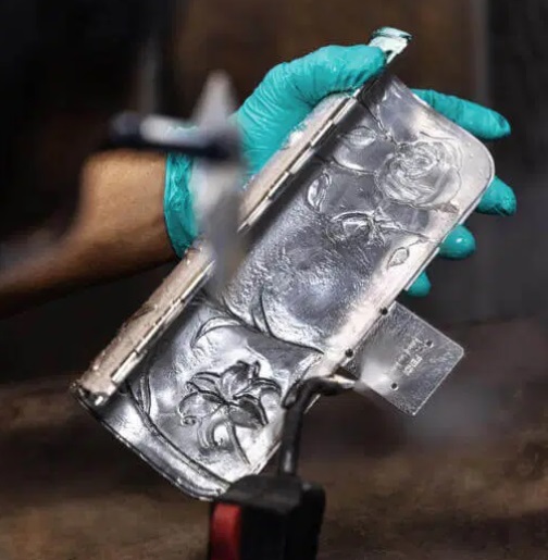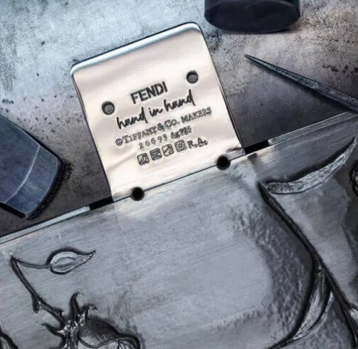 Încorporând moștenirea și măiestria Tiffany & Co. cu abilitățile și cunoștințele vechi ale Fendi în reinterpretarea iconicei Baguette, geanta „Hand in Hand” este creată folosind o tehnică de aurărie veche numită „vânătoare” pentru modelarea genții la o anumită formă și dimensiune. Geanta, care cântărește aproximativ 2.356 de grame, este apoi accentuată cu detalii florale pentru a-și spori silueta.