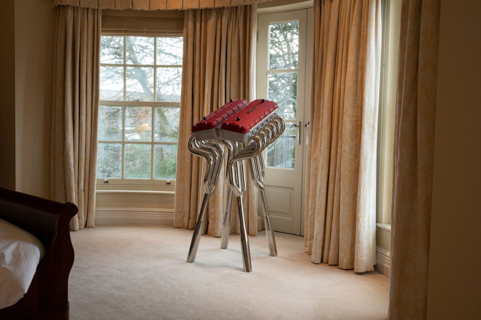 Vitrina cu clapetă deschisă a fost proiectată astfel încât să semene cu capacele unui 250 Testa Rossa. Pe de altă parte, suportul este fabricat din tuburi de oțel sudate TIG și cromate, pentru a arăta ca sistemul de evacuare al unui Ferrari clasic. Cartea a venit și cu o pereche de mănuși albe, astfel încât să nu strici opera de artă în timp ce încerci să răsfoiești paginile.