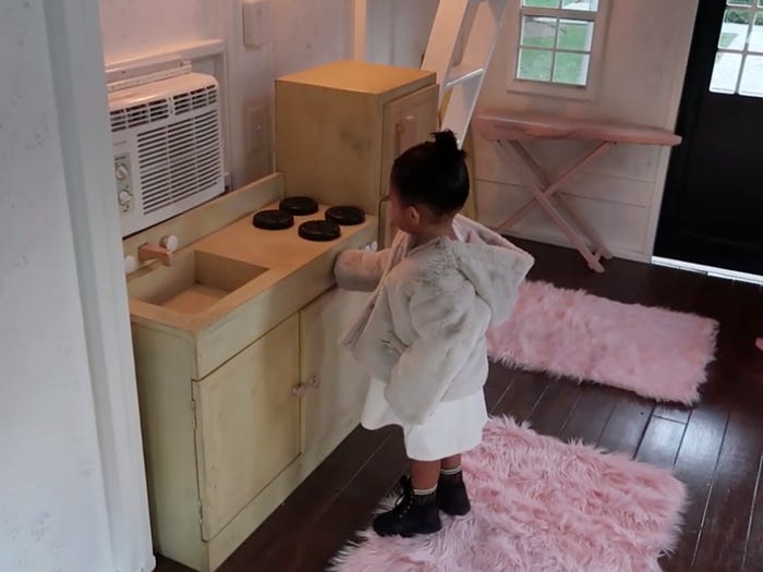 Casa de joacă este de fapt un mini-conac demn de o prințesă. „Am avut o casă ca asta când aveam vârsta lui Stormi”, a mărturisit Kylie Jenner în timp ce prezenta casa de joacă de dimensiuni considerabile. Filmată de aproape nici nu au spune că e vorba despre un spațiu de joacă pentru copii. Detaliile sunt atât de realiste, scrie Daily Mail. Casa dispune chiar și de aer condiționat, un șemineu fals și o chicinetă.