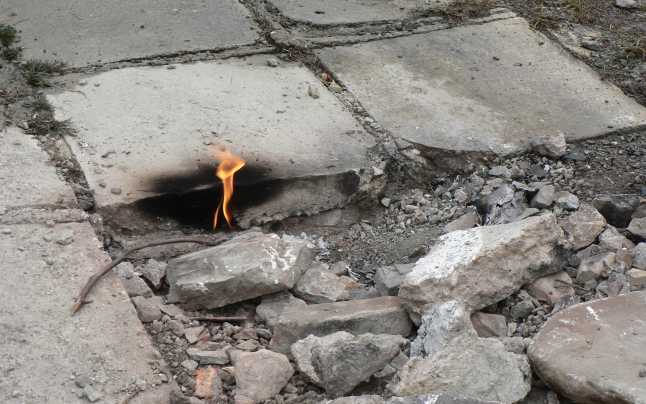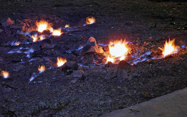 În perimetrul Focurilor Vii pot fi întâlnite uneori şi mici băltoace, care bolborosesc şi din care iese de asemenea gaz metan, dar care nu arde spontan.