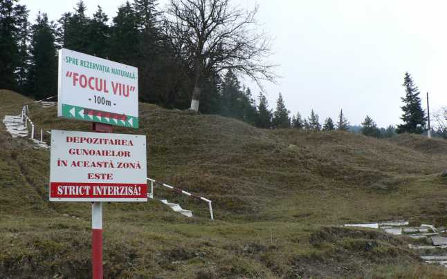 În munții Vrancei, la aproximativ 37 de kilometri de Focșani, pe cursul râului Milcov și într-o zonă incluzând localități cu nume frumoase (Mera, Reghiu, Tulnici), la limita unei păduri de brazi, se desfășoară un fenomen natural unic, foarte rar întâlnit în lume – focurile vii.