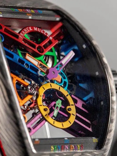 Acest limbaj de design este exemplificat perfect în Vanguard Skeleton Color Dreams, acum disponibil ca o exclusivitate a Asiei de Sud-Est. Descrise drept „a pune culori la încheietura mâinii”, sunt prezentate cele opt culori ale celebrei colecții Franck Muller Colour Dreams, disponibile într-un trio de diferite variante pentru această iterație. Este ca și cum psihedelia a prins viață într-un ceas.