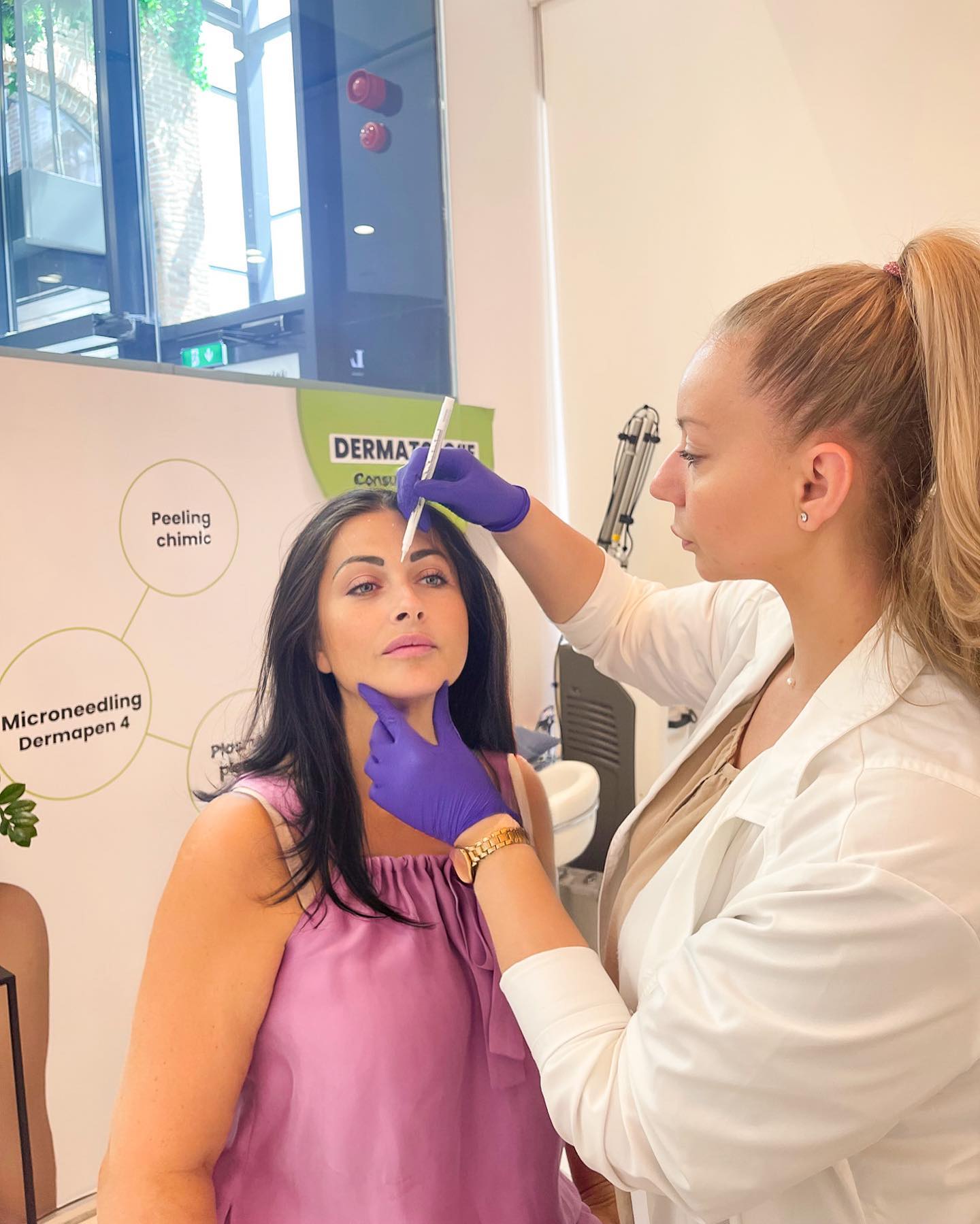 „Astazi a fost o alta zi de vacanta in care am facut “ceva” doar pentru mine. Am fost la @skinmedspa.ro pentru o sedinta de injectare de toxina botulina in zona fruntii, pentru netezirea ridului dintre sprancele.