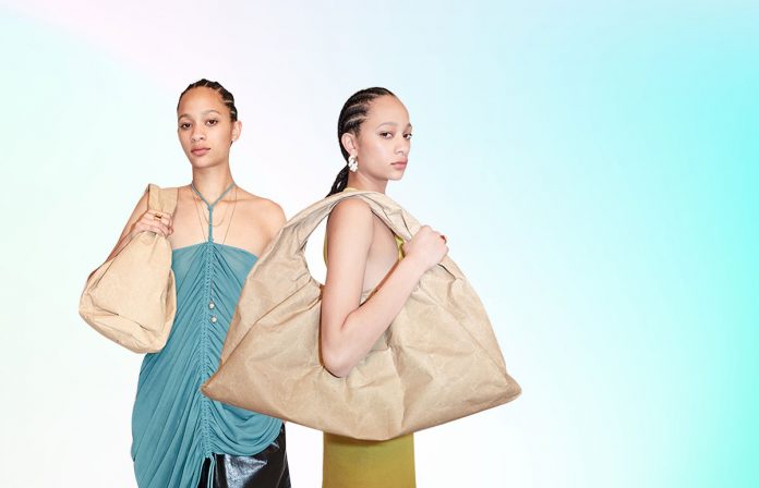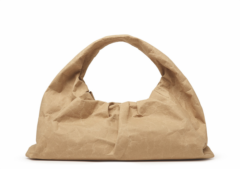 Geanta s-a reinventat la timp pentru a fi purtată în această vară. Brandul de modă a lansat două genți din hârtie kraft: Pouch pentru umăr și BV Twist. Daniel Lee a ales acest material sustenabil deoarece este foarte rezistent.