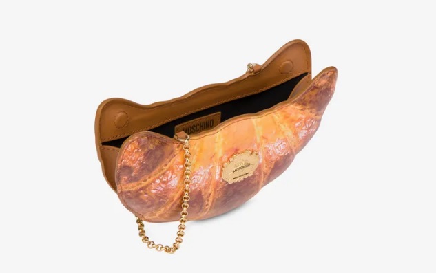 Moschino a pus în vânzare două modele inspirate de „vedetele” brutăriei franceze: o poşetă în formă de baghetă şi o geantă mini în formă de croissant.