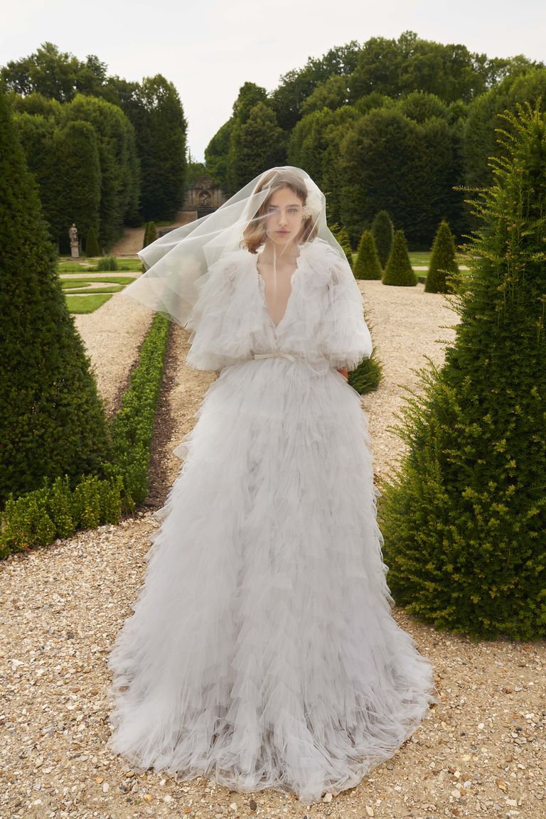 Giambattista Valli debutează în domeniu cu o colecție uimitoare de rochii de mireasă. Cunoscut pentru creațiile sale haute fashion, designerul din Paris a creat o colecție de 17 look-uri concepute special pentru mirese. Creațiile variază de la ținute mai scurte la rochii de seară și costume.