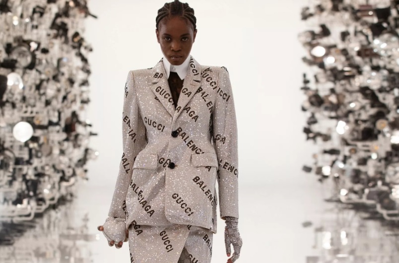 Lui Alessandro Michele îi place să surprindă și a reușit. Îi place și modul în care Demna Gvasalia a trezit casa Balenciaga cu rigoarea sa anticonformistă și volumele sale inedite. Prin urmare, a decis, după consultarea acestuia din urmă, să fure câteva piese - cele din prima sa colecție pentru Balenciaga - care îi plăceau în mod special. Le integrează astfel în această paradă filmată plină de surprize (și difuzată pe digital) care sărbătorește cu fast cei 100 de ani ai casei Gucci.