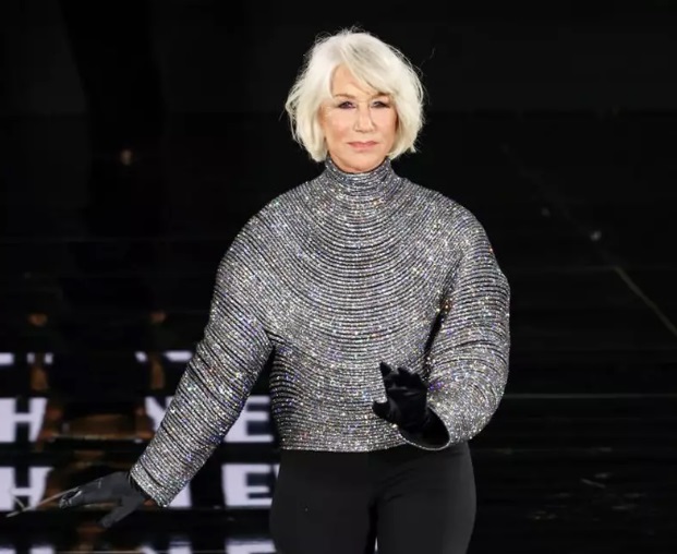 Frumusețea naturală a lui Mirren a fost evidențiată de un machiaj delicat: buze roz pal, obraz ușor fardat și tuș negru la ochi. Părul ei, tuns puțin deasupra umerilor într-un bob, era despărțit pe o parte. Potrivit site-ului oficial al prezentării de modă, evenimentul din acest an s-a concentrat pe reinterpretarea unui motto clasic francez.