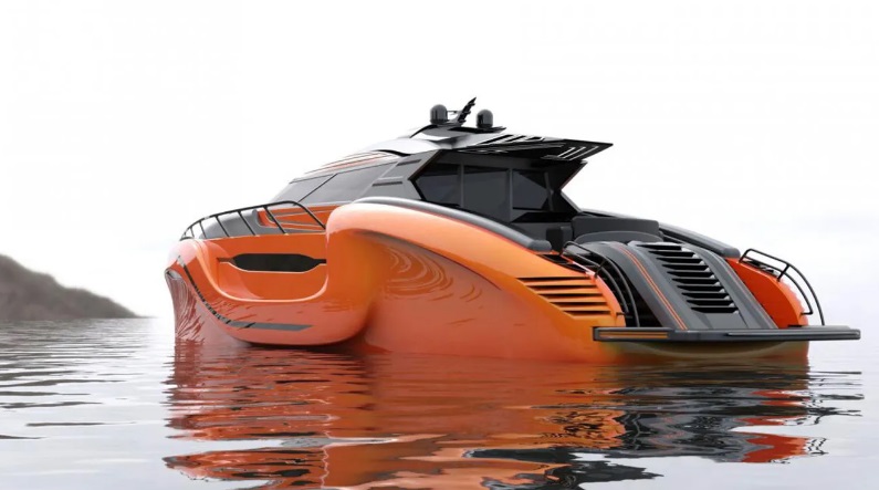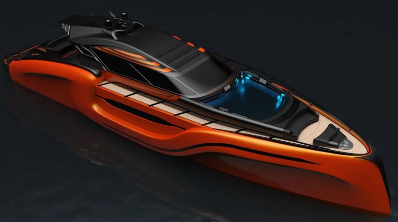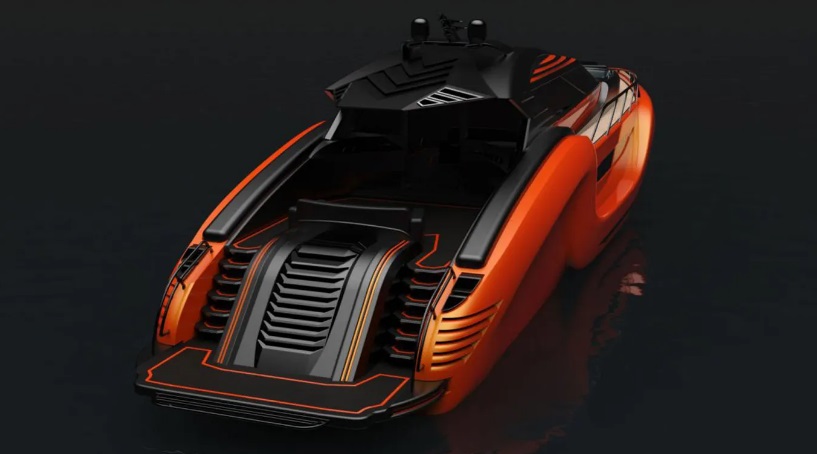 Conceptul a fost scris de echipa de proiectare internă a Naval Yachts pentru un client care iubește supermașinile. „Am luat câteva detalii de la Lamborghini ”, a declarat coproprietarul Naval Yachts, Barış Dinc, pentru Robb Report.