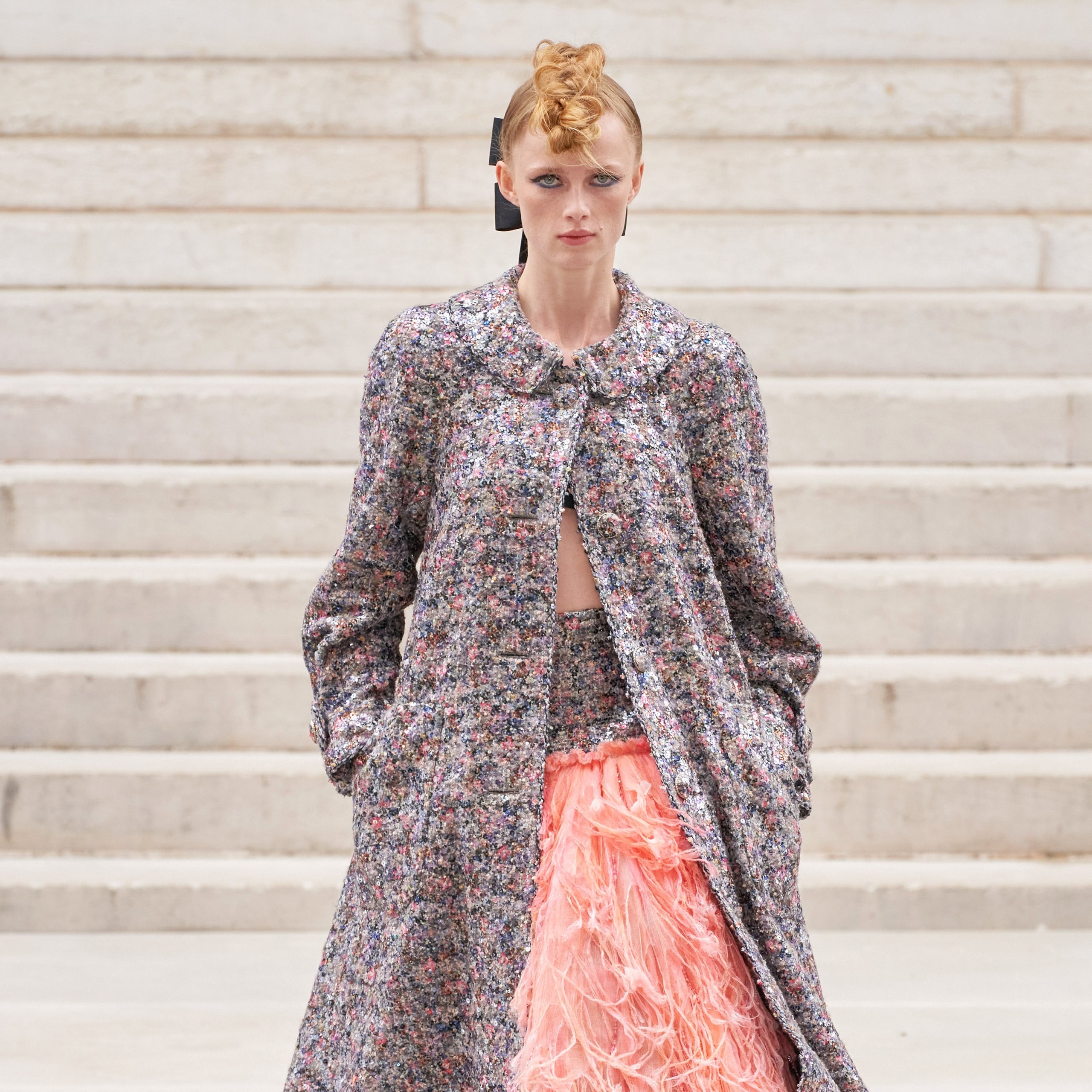 Inspirat de două femei artiste ale celui de-al XIX -lea secol, Berthe Morisot și Marie Laurencin, pentru parada Chanel Haute Couture toamna-iarna 2021-2022, director artistic Virginie Viard a tradus branduri bogate și pictoriale somptuoase în tweed și rochii brodate delicat.