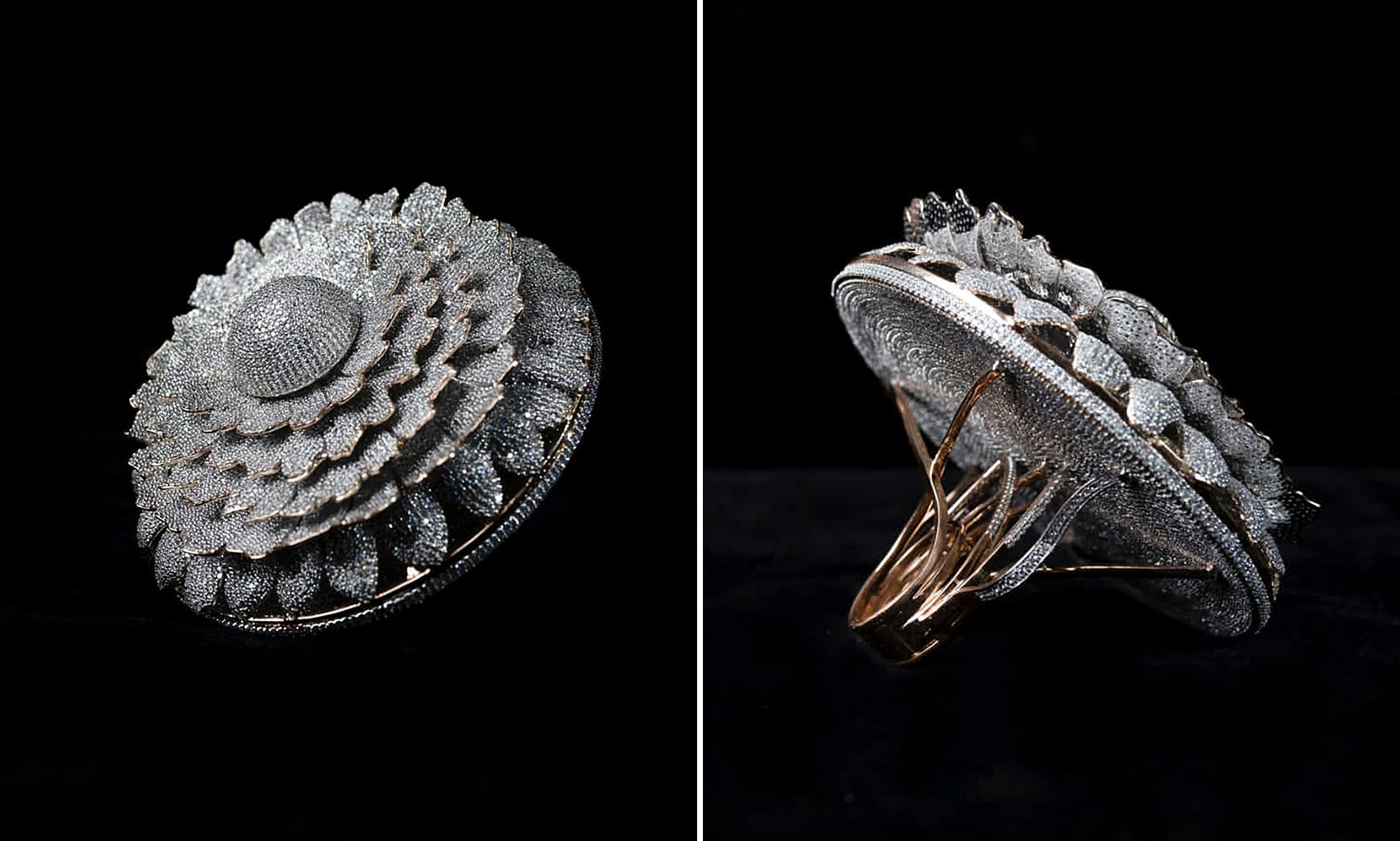 Într-o declarație, compania sa a spus că fiecare petală minusculă din designul de flori cu opt straturi al inelului este unică.