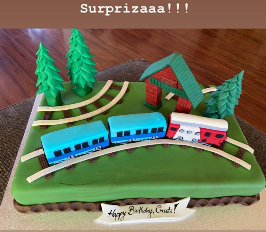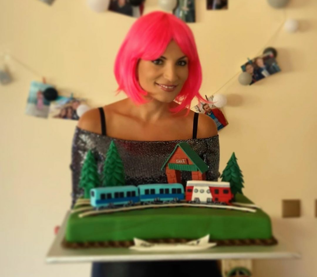 în stilul anilor 80. Mai mult, împreună cu fiica ei, Ruxandra, a reușit să facă rost de un tort special, în formă de tren, cu șină, vagoane și linie specială sau teren cu iarbă verde din marțipan. Și nu doar asta a fost singură surpriză, căci au purtat peruci colorate și au decorat