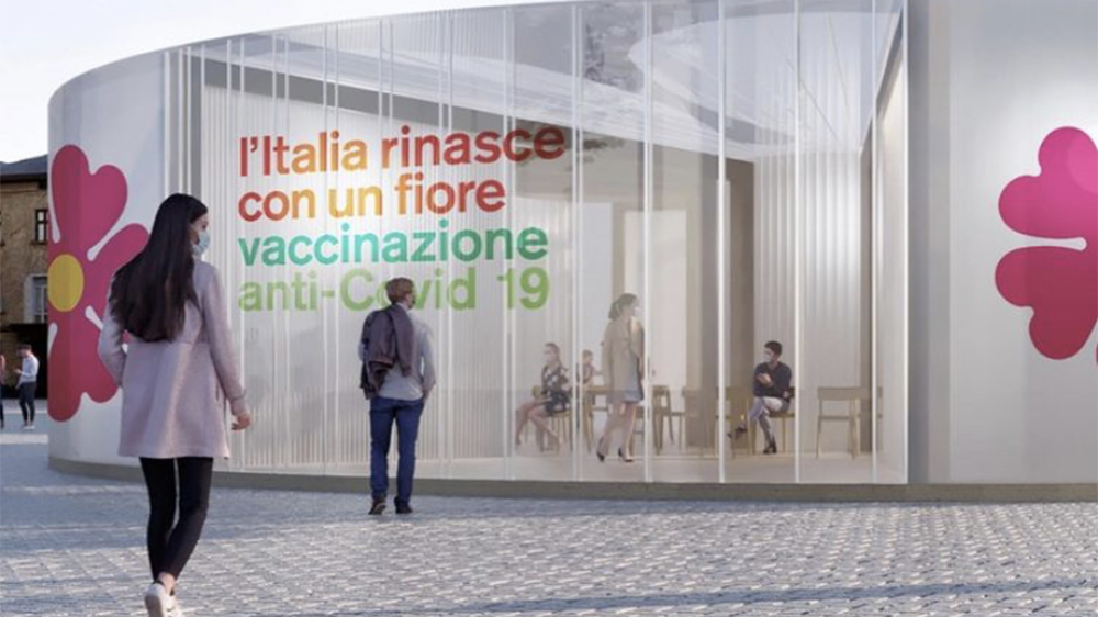 Designul pentru aceste pavilioane de vaccinare a fost creat de echipa arhitectulului Stefano Boeri, cel căruia i-a fost încredințată misiunea de a crea un logo și o identitate vizuală pentru campania de vaccinare. Simbolul floral sugerează regenerarea, a explicat arhitectul.