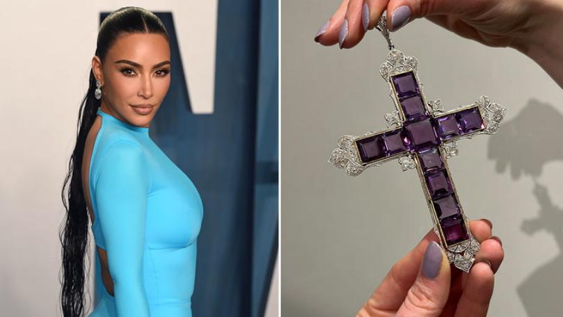 Realizat de bijutierii de curte Garrard în 1920, conform casei de licitații, pandantivul conține pietre de ametist tăiate pătrat în formă de cruce, decorate cu diamante tăiate circular într-un design floral distinct.
