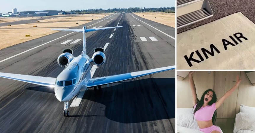 Avionul lui Kim este același cu cel folosit de cel mai bogat om din lume, Jeff Bezos. Prezintă un interior de culoare crem, finisaje din cașmir și scaune din piele - aceeași schemă de design ca și casa ei.