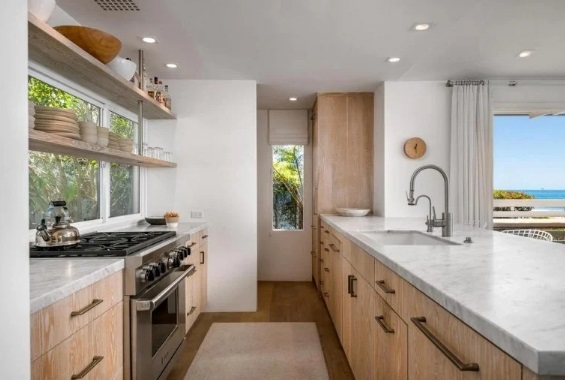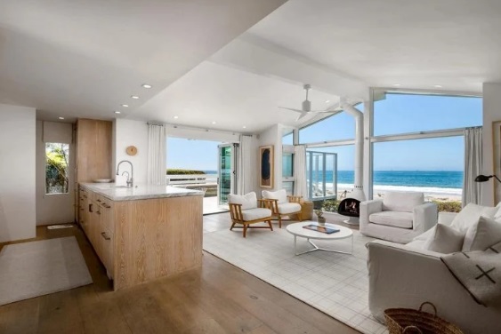 Casa superbă include, de asemenea, o bucătărie cu blaturi de granit și electrocasnice premium din inox care deservesc un living/sufragerie combinat cu un șemineu metalic și vedere panoramică la ocean prin pereții de sticlă. În plus, camera de zi se deschide spre o punte mare din lemn, în timp ce dormitoarele împart un balcon larg.