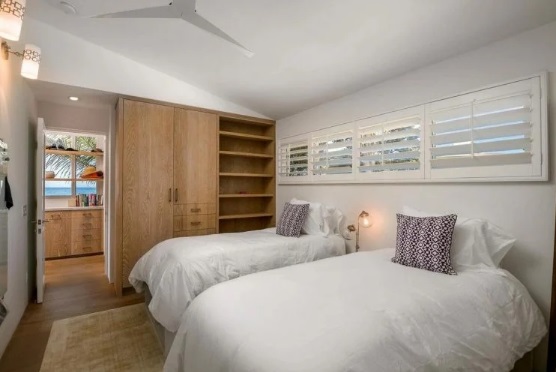 În plus, proprietatea prezintă o casă de oaspeți decomandată cu două etaje, cu două dormitoare separate. Atașat la el este un garaj pentru două mașini cu o stație de încărcare Tesla, o fațadă de 15 m la ocean și verdeață de jur împrejur.