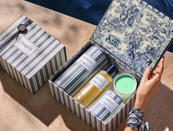 Pe lângă parfumuri, entuziaștii pot pune mâna pe o uimitoare cutie cu spray de călătorie reîncărcabilă Dioriviera, cu superbul imprimeu Toile de Jouy creat de Maria Grazia Chiuri și o lumânare Dioriviera Eden-Roc cu Toile de Jouy gravată pe ceramică nesmălțuită împreună cu dungi bayadère.