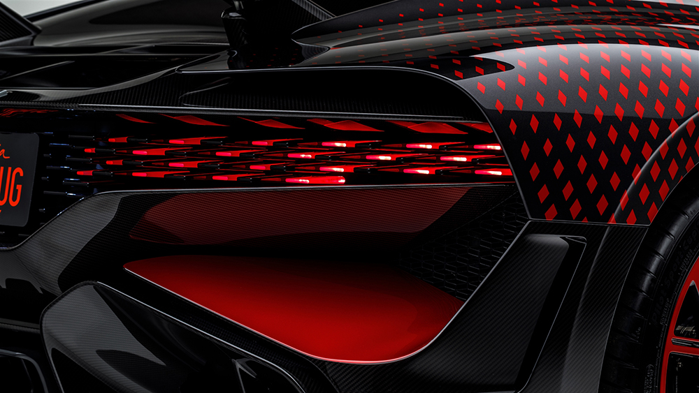Acest lucru nu s-a dovedit a fi un lucru ușor. De fapt, proiectul a durat aproximativ doi ani și a fost atât de dificil încât Bugatti aproape că s-a gândit să renunțe la un moment dat. Cel mai greu a fost aplicarea exactă a acestui model atrăgător. De fiecare dată când echipa de design a încercat să aplice șablonul diamantat pe caroserie, acesta a devenit distorsionat datorită contururilor, curbelor și nervurilor mașinii. Practic, grafica digitală creată pe computer nu se aplica pe mașină.