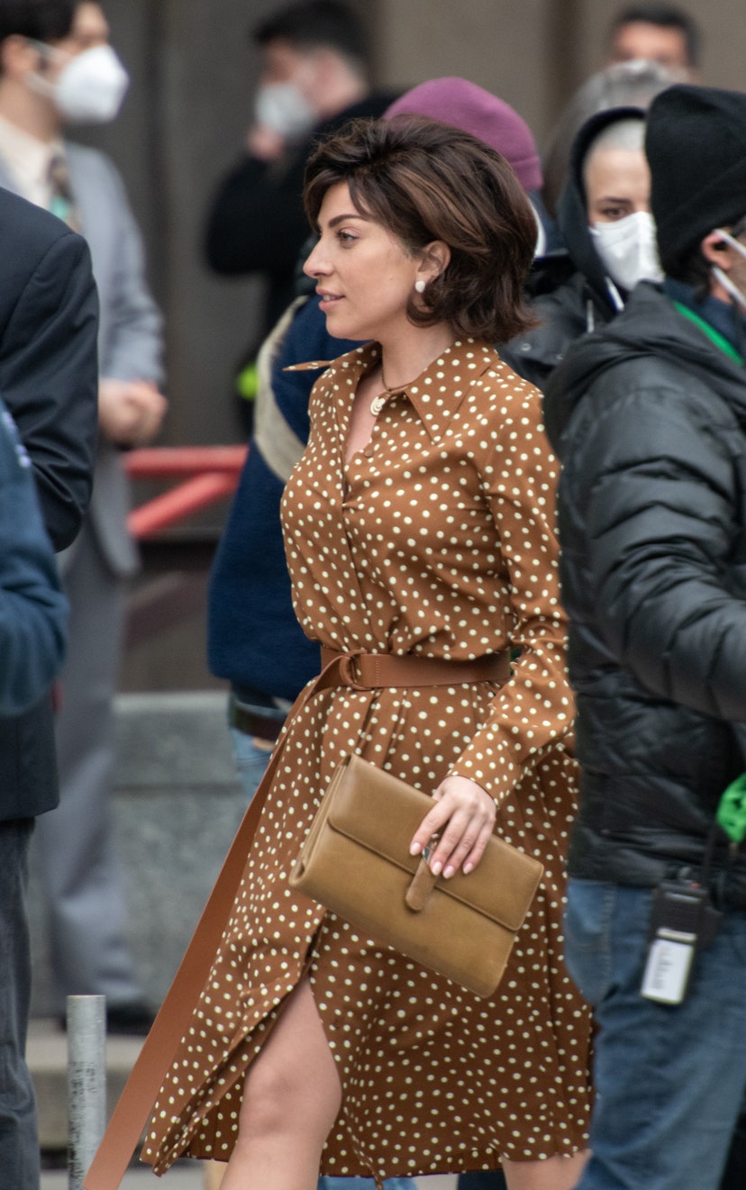 Garderoba lui Lady Gaga reflectă acest lucru, deoarece este întotdeauna acoperită cu perle și diamante, înfășurată în blană de nurcă, poartă eșarfe de mătase pe cap și genți de mână prețioase pe braț. Actrița este chic chiar și în Alpi, unde a fost văzută într-un costum negru de schi. Actrița arată superb și în centrul orașului Milano, într-o rochie cu buline Max Mara, accesorizată cu un clutch Gucci vintage. Cu toate acestea, preferatul nostru rămâne ținuta formată dintr-o pelerină sofisticată cu franjuri, fustă midi și pălărie.