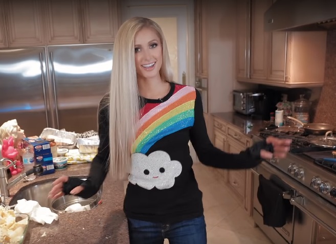 În emisiunea "Cooking with Paris" ("Gătind cu Paris"), Paris Hilton și câinele ei s-au transformat în bucătari care gătesc o lasagna chinuită. Pe parcursul unui videoclip YouTube de 15 minute, Paris Hilton gătește și tot gătește. Apare în bucătăria ei, ținând un câine mic îmbrăcat în costum de servitoare, după care îi salute pe fani spunând „După cum știți toți - bine, toți știți - oamenii care mă știu, știu că sunt un bucătar minunat.” O propoziție de 19 cuvinte, primele 15 dintre ele fiind complet redundante. Tot ce avea nevoie să spună era „Sunt un bucătar uimitor”. Găsiți filmulețul întreg " target="_blank">aici.