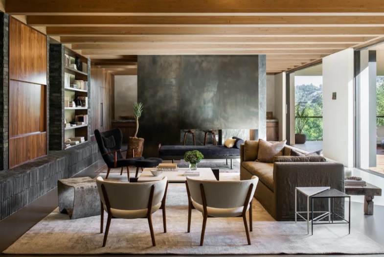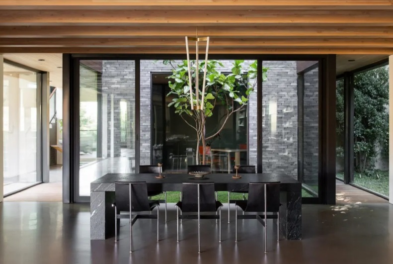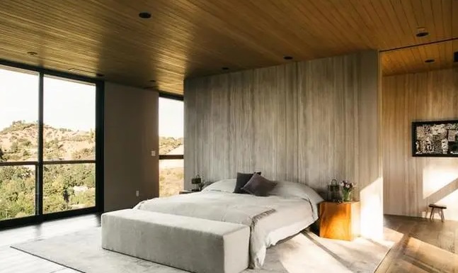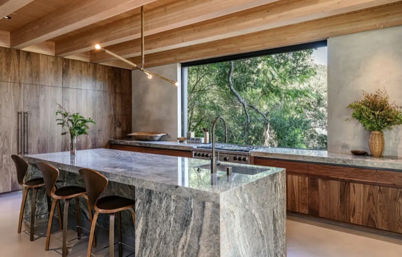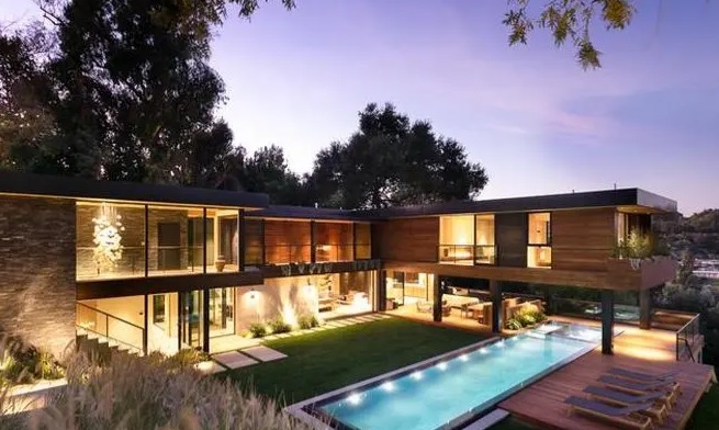 Cocoțată pe un deal deasupra Beverly Hills, casa proaspăt construită conține trei dormitoare și patru băi pe o suprafață de 500 de metri pătrați. Proiectată pentru a îmbrățișa împrejurimile sale naturale, locuința cu lambriuri din lemn folosește din abundență materiale naturale și conține un atrium în aer liber cu un smochin.