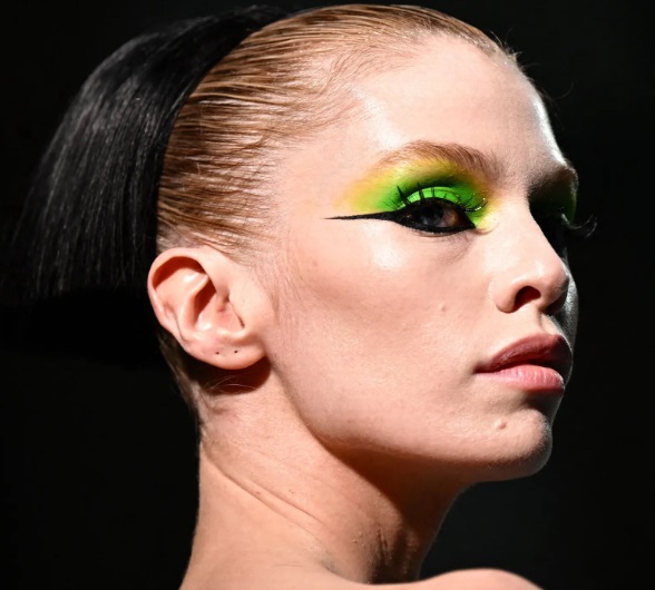 Unele modele poartă căptușeli ultra-îndrăznețe, întinse până la tâmple, altele au bloc de culoare, pleoape roz, verzi sau albastre sau linii inferioare ale genelor, sau chiar sprâncene decolorate îmbunătățite cu o linie fluorescentă. Atâtea look-uri, fiecare mai creative decât altele, confirmând continuarea trendului arty eye vara viitoare.