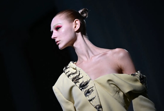 Pentru a se potrivi cu măreția aspectului, Eugene Souleiman își imaginează părul în formă și culoare grozave. Între extensiile plasate la spate, boburile ultra-netede, cocurile structurate și liniile curgătoare, coafurile le evocă pe cele ale unei gheișe pop. Secretul coaforului? Folosiți peruci care vă permit să depășiți toate limitele.