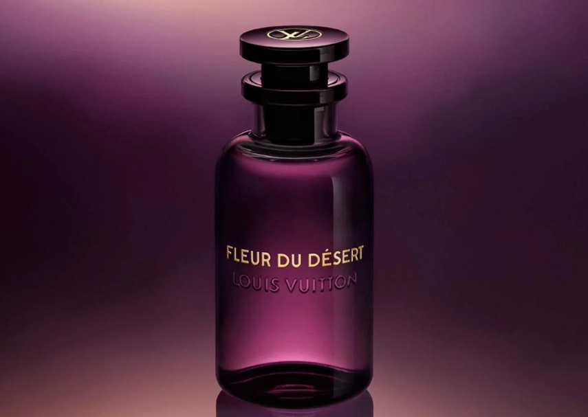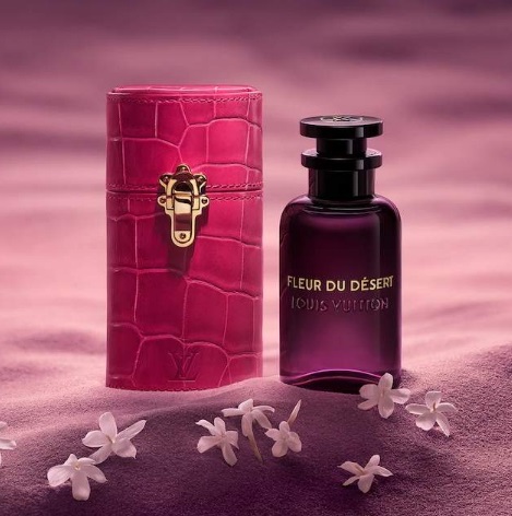 Rafinata Louis Vuitton Fleur du Désert este disponibilă ca apă de parfum de 100 și 200 ml într-o sticlă reîncărcabilă și o carcasă roz de lux.