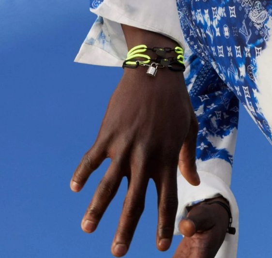 Clusterul poartă aceeași estetică și semnătura Virgil Abloh prin excelență, reinterpretată cu materiale și culori noi. Disponibile fie ca lanț, lacăt sau charm Louis Vuitton, accesoriile sunt vopsite în titan natural sau negru, iar șnurul este disponibil în galben neon, curcubeu sau negru.
