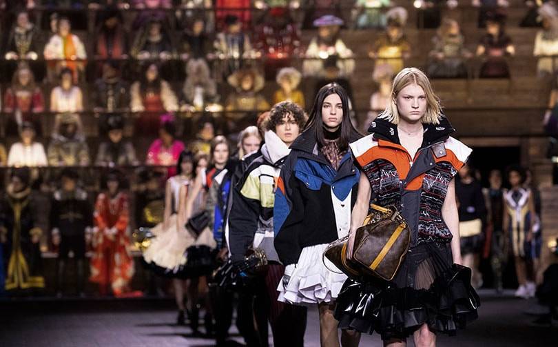 Pe podiumul unui pavilion instalat în curtea Muzeului Luvrului, Nicolas Ghesquiere a propus un amestec ameţitor de epoci şi stiluri, materiale şi imprimeuri pentru o colecţie uluitoare.
