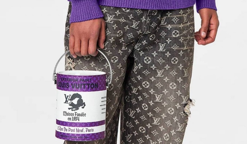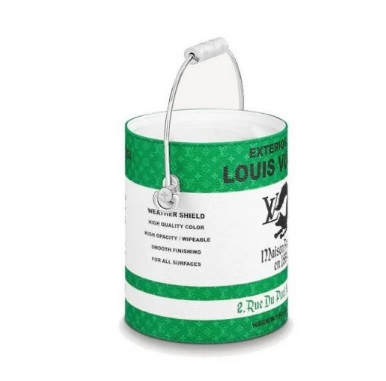 Disponibil în „Lagoon”, „Verde” și „Galben”, accesoriul vine cu un mâner din metal cromat și are un inel superior care se deschide datorită balamalei din piele. La exterior, seamănă cu o cutie de vopsea reală, pe care sunt inscripționate cuvintele „VOPSEA EXTERIOR”.