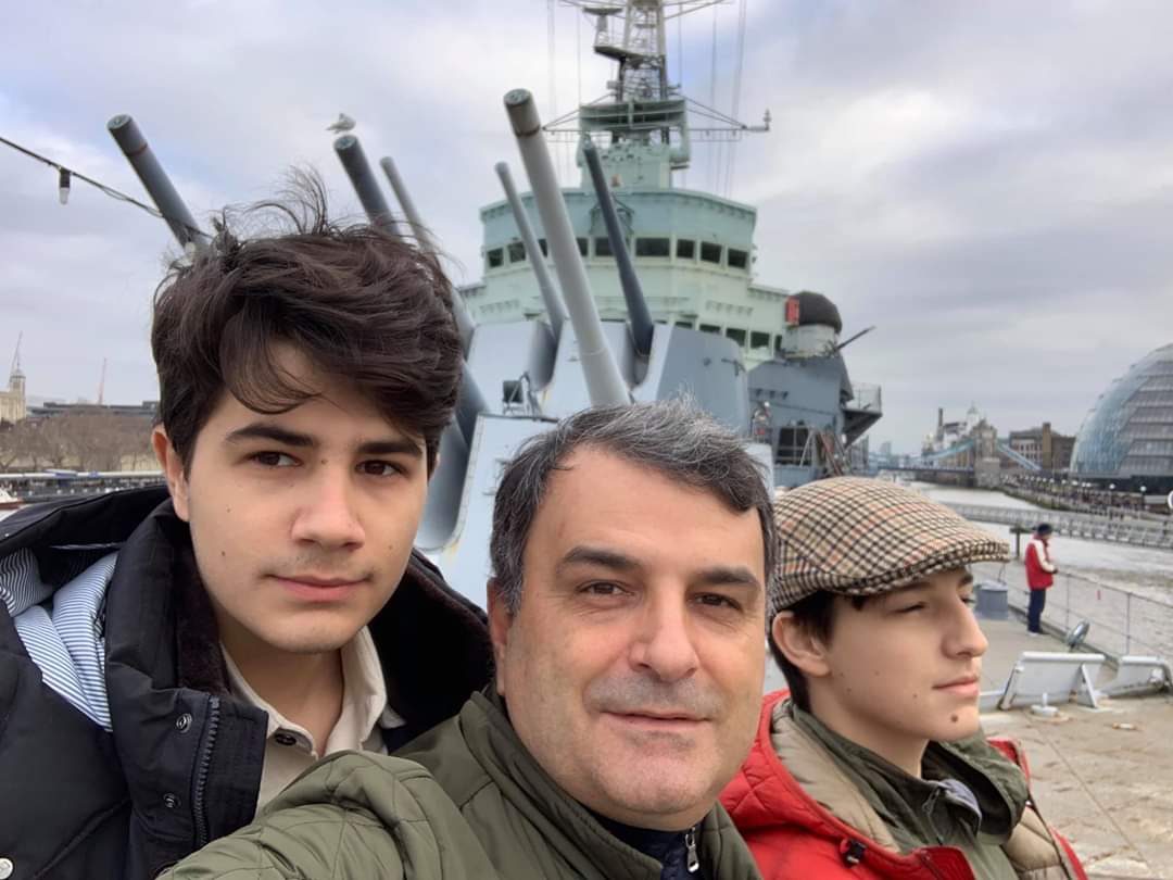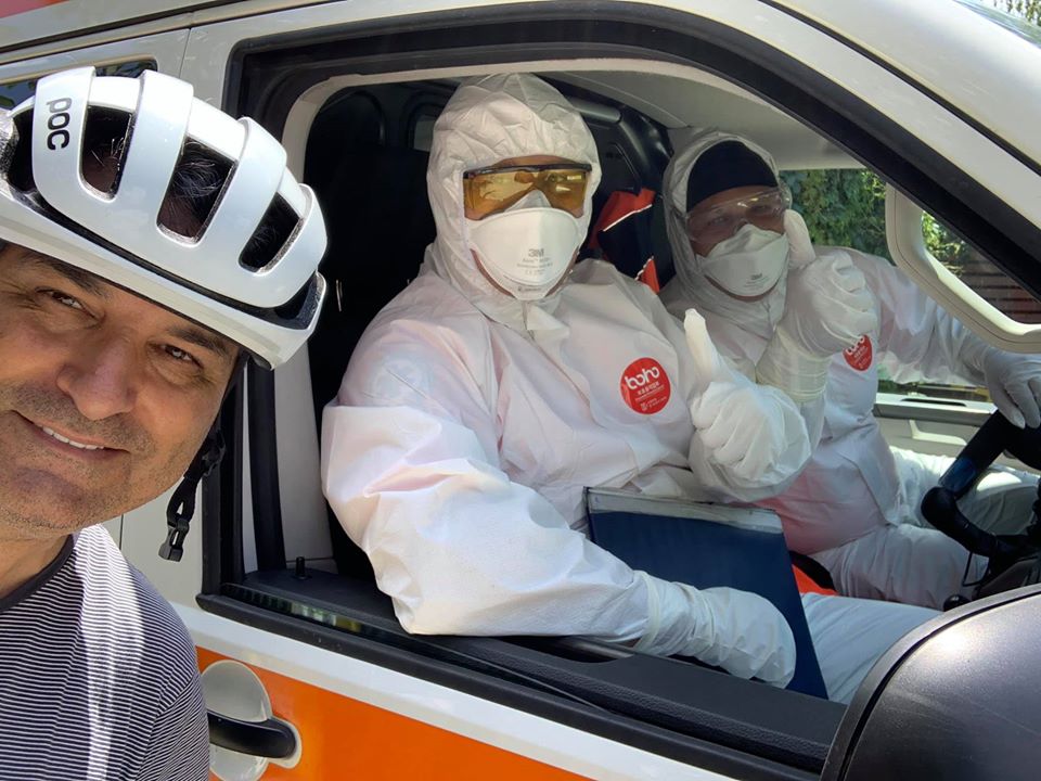 de cine....) Nici măcar o cafea n-am putut să le dăm. Așa că las poza asta aici, să știe cât de mult au contat pentru noi. La o oră după, a venit și răspunsul de la Matei Bals: e negativ. Acu’ trebuie să-l facem bine de amigdalită. Țineți-ne pumnii… (P.S. Sunt cu cască de ciclist pentru că m-am dus după ei cu bicicleta, să nu se rătăcească în cartier!)", a scris Lucian despre fiul cel mic!
