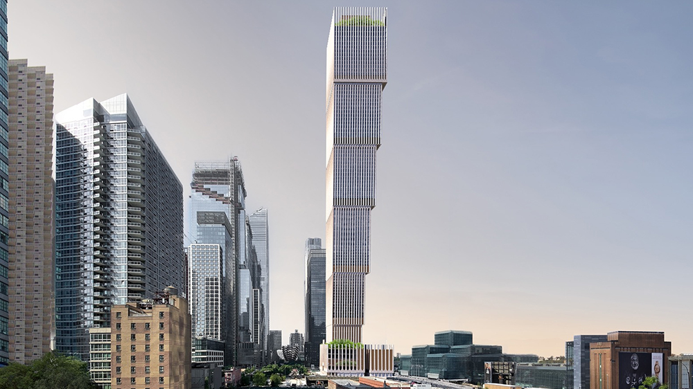 Clădirea supertall - care a fost propusă pentru site-ul K, la doar câteva blocuri de Hudson Yards și High Line - are un design unic inversat care îi dă impresia că a fost construit cu susul în jos. Clădirea iese în consolă de cinci ori de la bază, fiecare nivel progresiv mai mare decât ultimul. Arată aproape ca un turn în trepte, cu cel mai mic în partea de jos și cel mai mare în partea de sus.