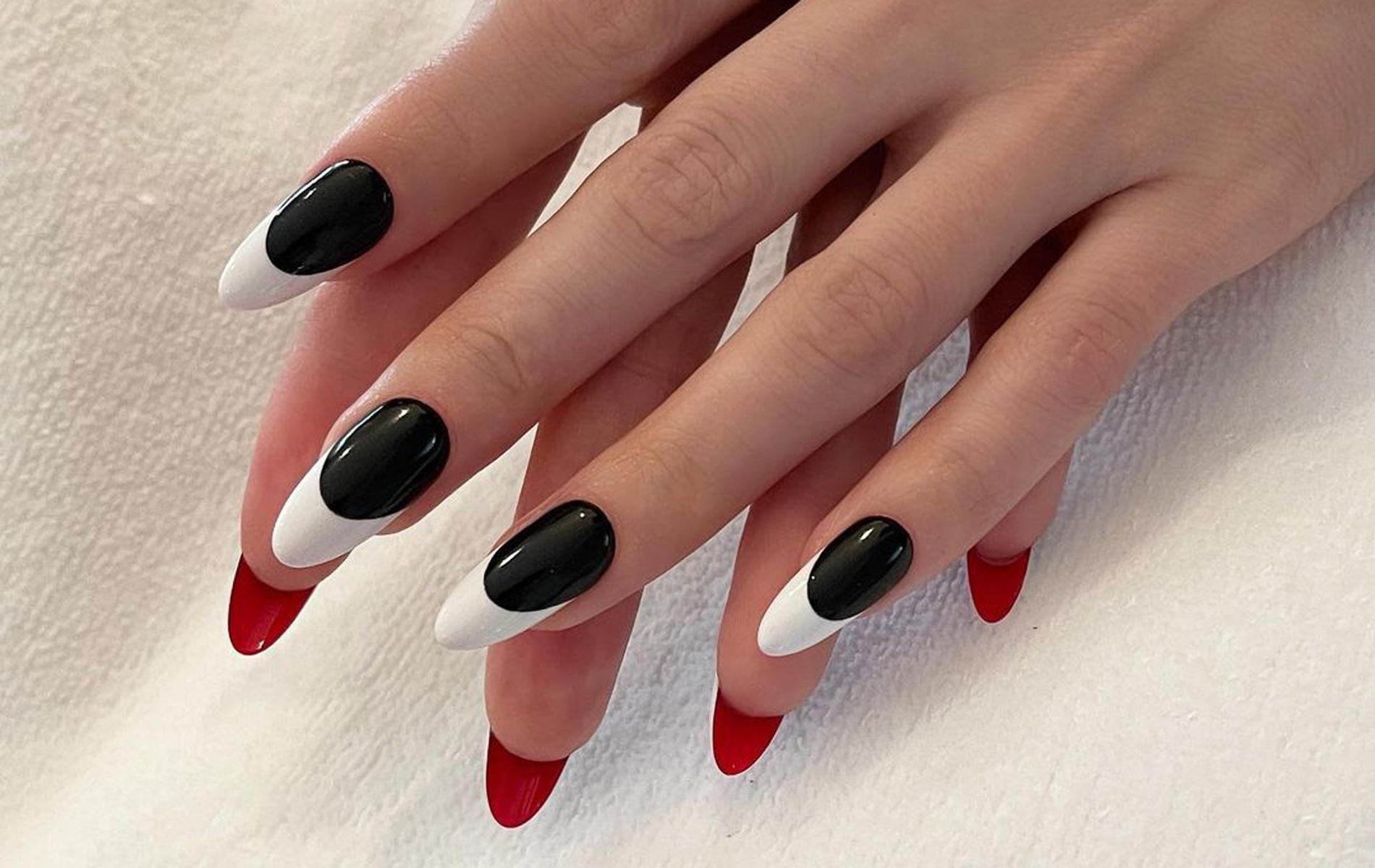 Această manichiură a sedus-o pe Selena Gomez. Tom Bachik, care s-a ocupat de această manichiură, a postat mai multe fotografii ale operei sale pe contul său de Instagram. Tom colorează unghiile multor personalități, de la Jennifer Lopez la Margot Robbie. Pentru unghiile Selenei Gomez, el a optat pentru un duo în alb și negru pentru efectul de manichiură franțuzească cu culorile Big Black Onyx și Alpine Snow de la OPI. Big Apple Red ale aceluiași brand amintește de celebrul designer de pantofi.